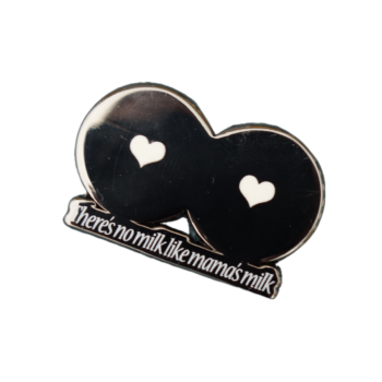 Exclusive No Milk Like Mama’s logo pin – with the slogan ‘there’s no milk like mama’s milk’.